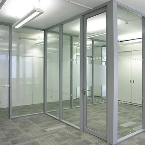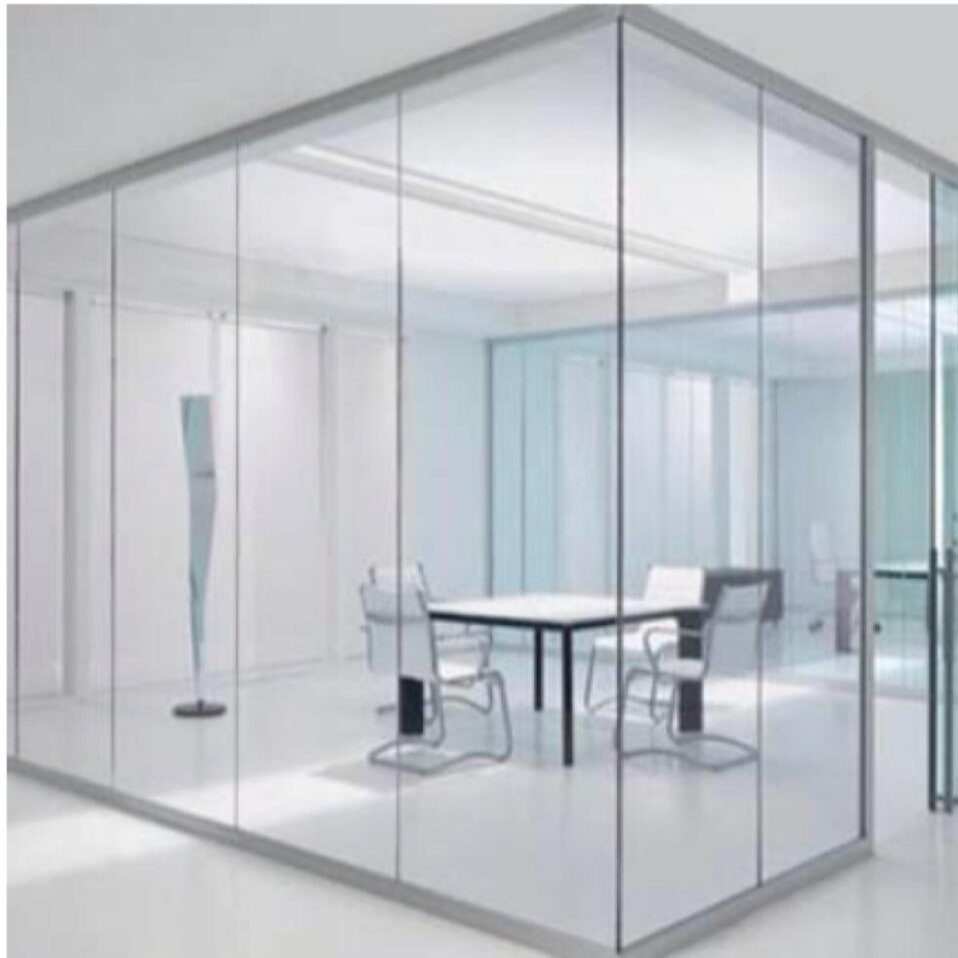 A glass and aluminum partition is a common architectural element used in interior design to divide spaces while maintaining an open and airy feel. It typically consists of glass panels supported by aluminum frames or channels.
